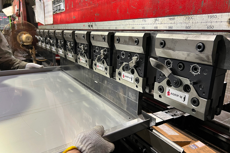 当社では鉄工作業に必要な機器を豊富に揃え、図面の作成からプログラミング、切断、曲げ、溶接、仕上げまでの全工程を社内で完結させる体制を整えております。金属板の購入についても対応しますので、お気軽にご相談ください。